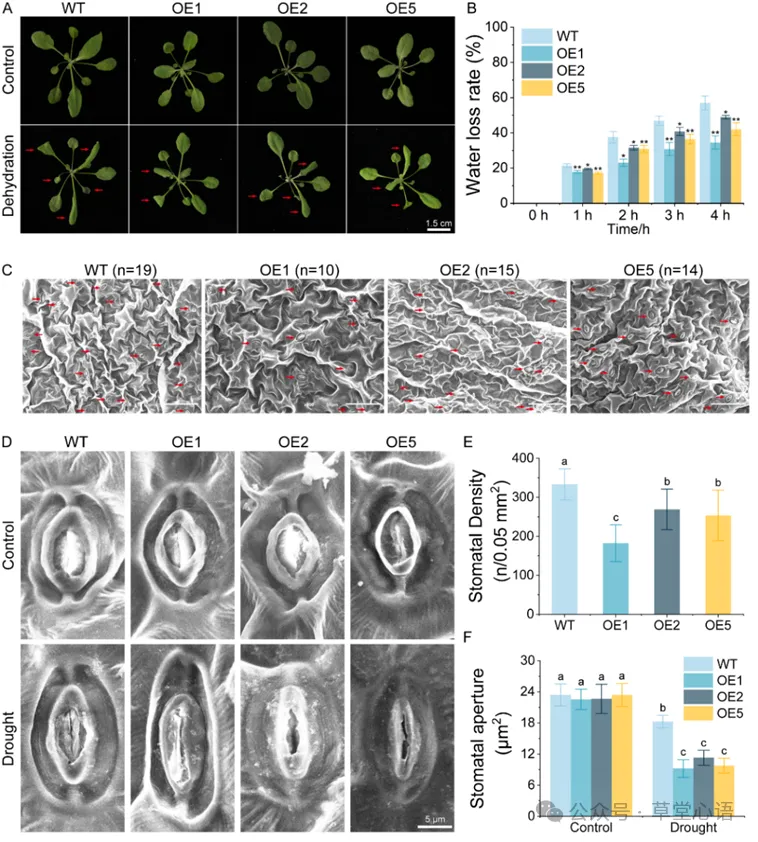 5.VsPDC2通过调控气孔密度和开合度调控植物的耐旱性