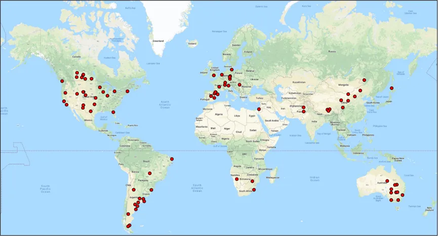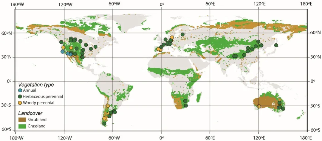 评估干旱对生态系统的影响通常依赖于在特定生态系统中进行的干旱实验。然而,这些单点实验在实验处理、指标体系和测定方法缺乏统一性,导致结果之间可比性较差,难以在大尺度上进行数据整合,限制了区域乃至全球尺度干旱效应的准确评估。为此,团队联合全球百余家科研机构,发起了全球干旱网络(Drought Net),在全球136个实验点建立了干旱实验。