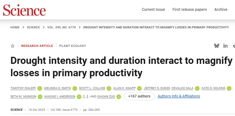 这项发表于《Science》的成果标志着中国科研团队在全球气候变化生态学研究中的重要突破,不仅解决了长期困扰学界的全球性难题——“干旱强度与持续时间如何共同决定生态系统生产力损失”,也在国际合作与科学范式上树立了典范。它让世界更清晰地认识到:干旱不仅是气候事件,更是生态系统稳定性和人类可持续发展的临界挑战。