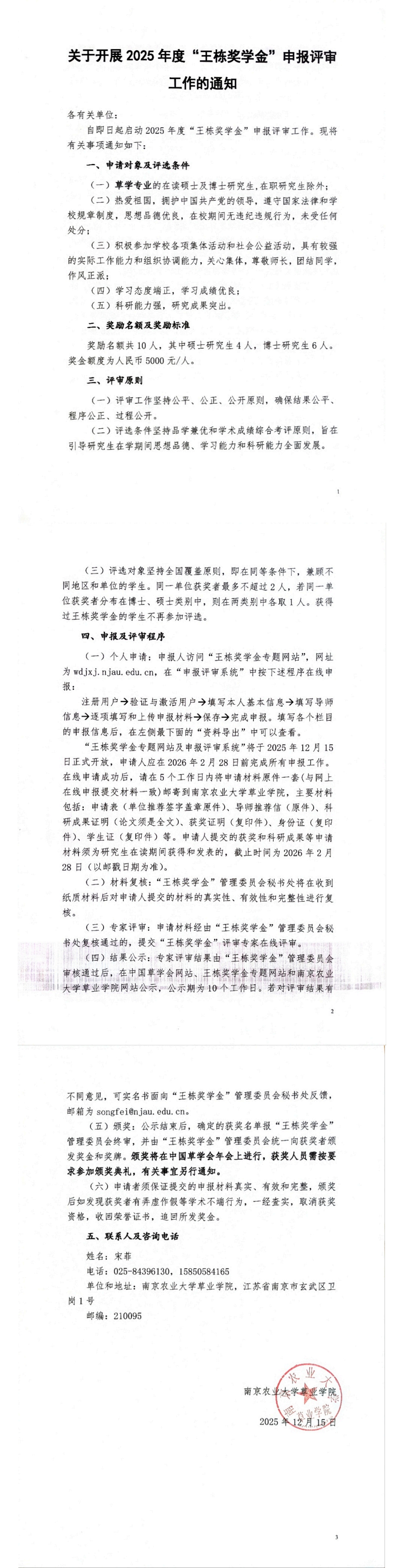 关于开展2025年度“王栋奖学金”申报评审工作的通知
