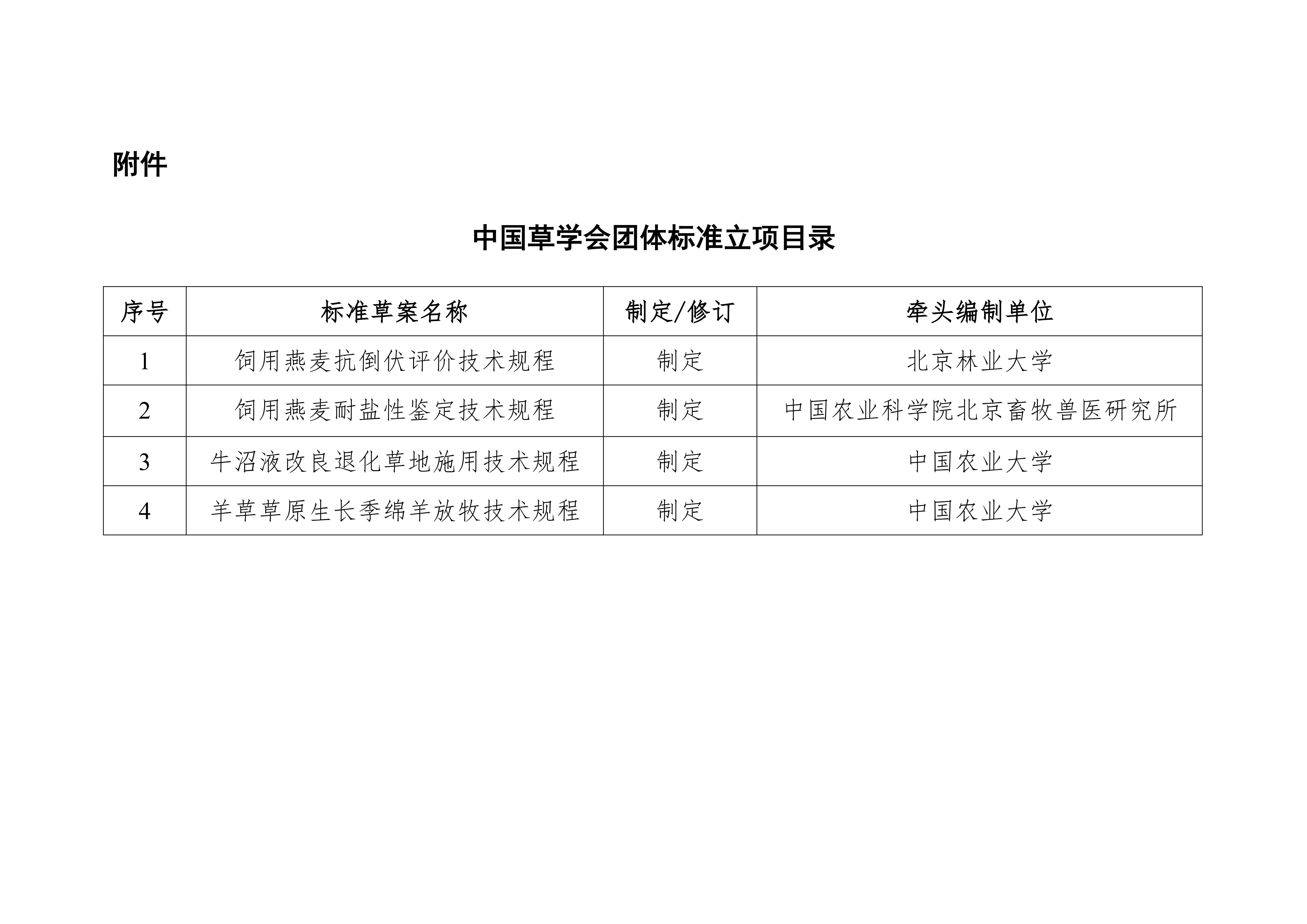 中国草学会关于《饲用燕麦抗倒伏评价技术规程》等4项团体标准立项的公告